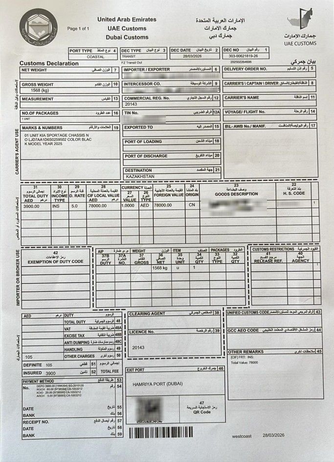 - Экспортное оформление, помощь брокера - 1 500 AED (~38 000 ₽) / Включая экспортный сертификат и подачу в порт
