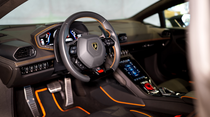 Насладитесь незабываемым опытом в сердце ОАЭ, арендуя великолепный Lamborghini Huracán от компании DEIZ. Этот желтый красавец с черным кожаным салоном воплощает в себе мощь, стиль и современные технологии. С его мощностью в 640 л.с. и великолепным V10 двигателем объемом 5.2 литра, вы сможете разгоняться до 100 км/ч всего за 3 секунды. А с максимальной скоростью в 310 км/ч ваше сердце забьется быстрее от волнения, когда вы будете мчаться по пустынным шоссе или вдоль побережья Персидского залива. Только представьте себе: вы за рулем этого роскошного купе, ветер в волосах и в