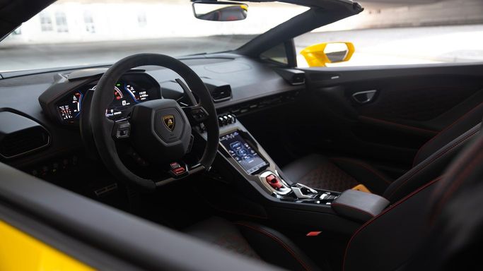 Immerse yourself in a world of unparalleled sensations and limitless speed with the exclusive Lamborghini Huracán from AVA Car Rental. This dazzling yellow roadster with a black interior is more than just a car—it’s a true work of art, crafted for those who value style and power. With the Huracán, you’ll effortlessly become the center of attention on Dubai’s streets, enjoying the perfect harmony of design and technology. Accelerating to 100 km/h in just 3.6 seconds and reaching an incredible top speed of 319 km/h, the Huracán’s 580 horsepower and 5.2-liter engine make ever
