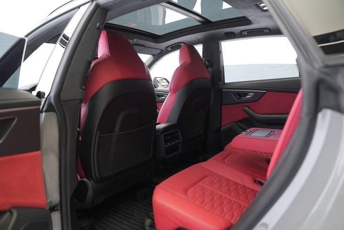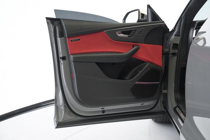 2023 Audi RS Q8 Supercar Speed. SUV Practicality. Audi RS, Reimagined. The 2023 Audi RS Q8 is the pinnacle of Audi Sport’s SUV engineering — blending bold design, V8 power, and everyday usability into one high-performance luxury package. Finished in a sleek and aggressive Nardo Grey exterior over a bold Red leather interior, this RS Q8 turns heads wherever it goes — from city streets to racetrack straights. Now available at Exotic Cars Dubai, this RS-badged powerhouse is built for those who want it all: speed, space, style, and sophistication. Exterior — Nardo Grey Domin