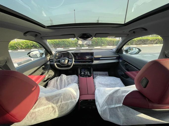 New BMW 530i Warranty & Service 2025 GCC for sale in Dubai. The car is full of great options like navigation, climate control, Bluetooth, and leather seats (see photos). This 2025 BMW 530i 18" wheels and Red interior.
