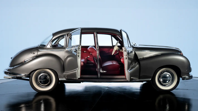 1954 BMW 502 Sedan Engine: 2.6L (2580 cc) V8 Transmission: 4-Speed Manual Mileage: 93,580 kms Spec / Origin: German luxury sedan Additional Details: * Silver exterior * Maroon leather interior * Suicide doors (rear-hinged) * Early BMW flagship — rare collector classic