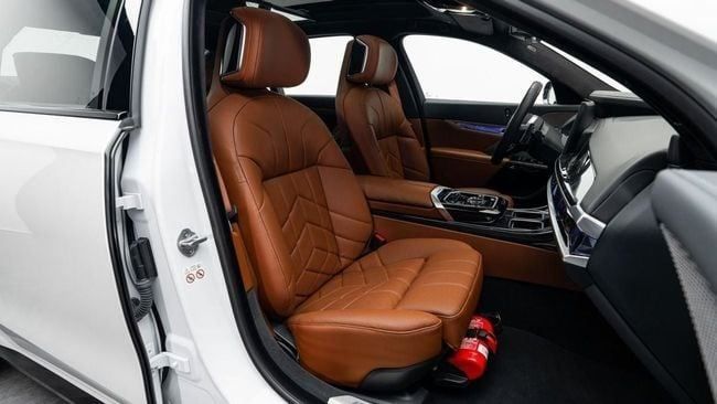 Selling Price: AED 405,000 Starting from: AED 6,142 per month Payable in 5 Years with 20% Down Payment Bank terms & conditions may apply 2024 BMW 740i Mileage: 9,520 Km GCC Specs Under Warranty and Service Contract till Jul 1, 2029 Engine Size: 3.0L 6-CYL Horsepower: 375 HP Exterior Color: White Interior Color: Brown