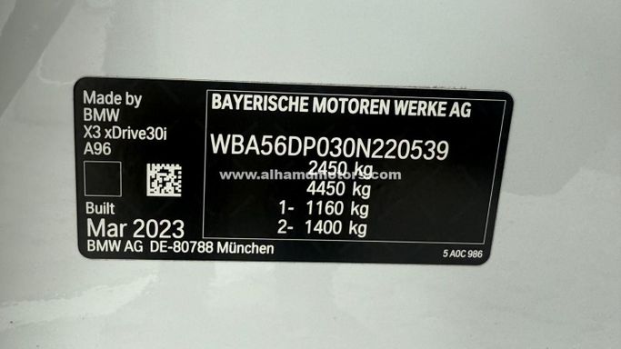 BMW X3 ,WITH TWIN POWER TURBO ,YEAR MODEL 2023 ,WITH SUNROOF ,BODY COLOR WHITE INTERIOR COLOR GREY ,PETROL ,ENGINE CAPACITY 2,0 LITER ,MILEAGE = 23,629 KM RIGHT HAND DRIVE ,LEATHER ECLECTRIC SEATS ,PUSH START ,4WD ALLOY WHELLS ,USED TIRES ,AUSTRALIA SPECS