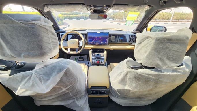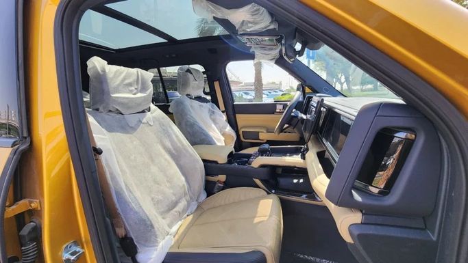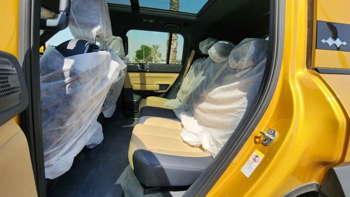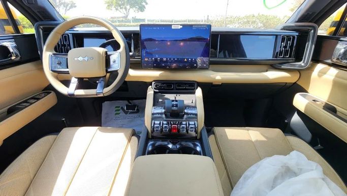 We present to your attention the new BYD FangChengBao Leopard 5 SUV built in 2023, which combines innovative technology and luxurious design, creating the perfect car for those who value comfort and power. This crossover stands out not only for its golden hue, which highlights its elegant lines, but also for its impressive performance: the 687 hp hybrid engine and all-wheel drive make it easy to overcome any obstacles in your path. The reliable variator transmission ensures smooth and silent running, while the modern hybrid system ensures high efficiency without loss of dy
