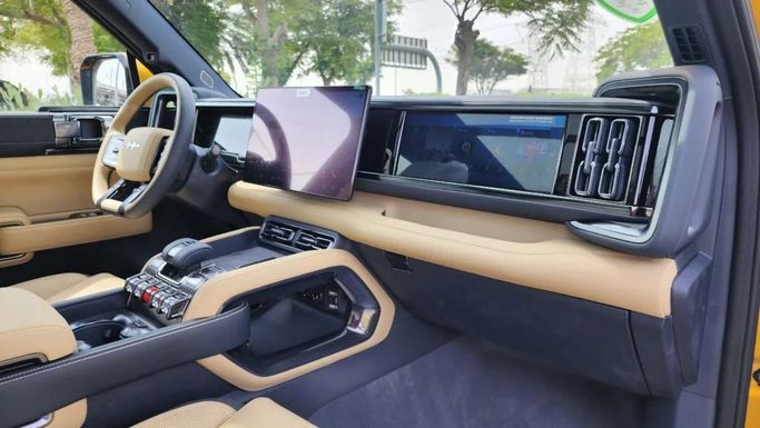 We present to you the new BYD FangChengBao Leopard 5, an ideal SUV with unique characteristics that is ready for any adventure and challenges. With a power output of 687 hp, this car combines high performance and environmental friendliness with a hybrid engine. All-wheel drive provides you with confidence in any terrain, and the CVT transmission makes every ride smooth and comfortable. The elegant golden color sets the FangChengBao Leopard 5 apart from other cars on the road and highlights its modern design, which can attract the attention of even the most discerning car e