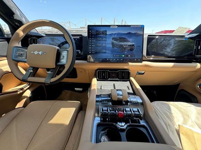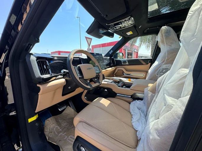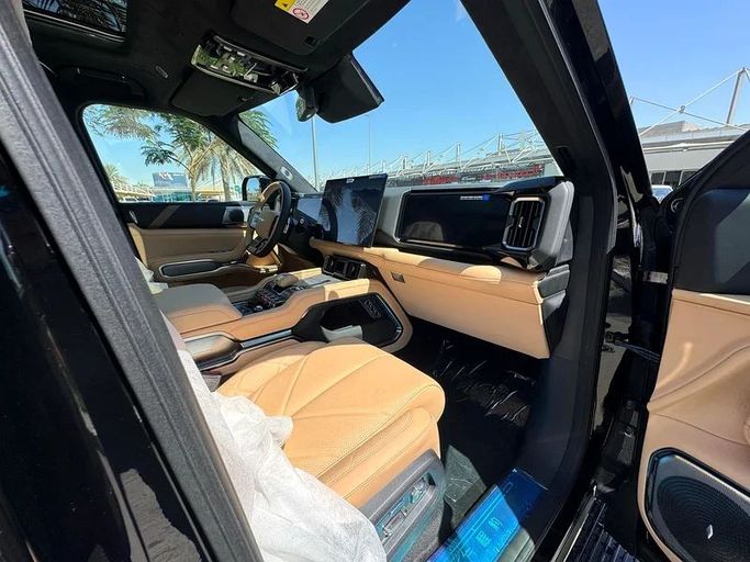BYD Leopard 8 2025 Flagship fully loaded New 2025 BYD FangChengBao Leopard 8, a five-door SUV finished in black, comes with Chinese-market specifications. It pairs a 2.0-liter hybrid powertrain with all-wheel drive and a Continuously Variable Transmission, delivering up to 748 horsepower. This setup blends strong performance with hybrid efficiency, offering confident acceleration while promoting lower fuel consumption for daily driving. The Leopard 8 features a bold SUV silhouette and a refined black finish that emphasizes its modern design. Inside, design and technology