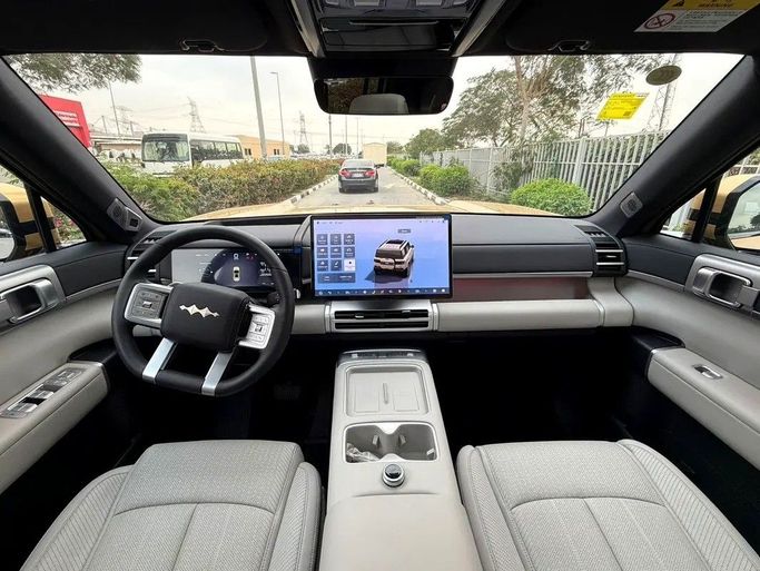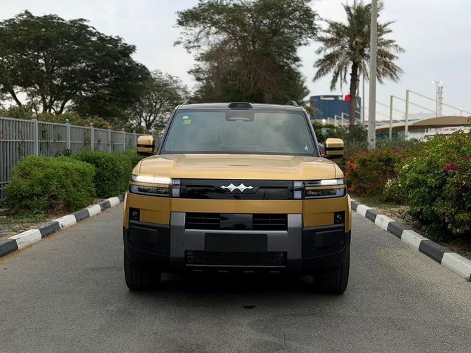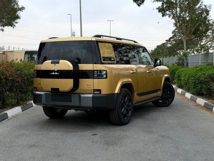 The latest BYD FangChengBao Titanium 7 is available in a 5-door SUV version equipped with all-wheel drive and a hybrid system. It impresses with a harmonious combination of power and economy. Under the hood, it features a 1.5-liter hybrid engine paired with a continuously variable (CVT) transmission, developing 490 hp, which ensures confident dynamics on all roads. The exclusive gold color highlights the modern design and status of the vehicle, while the all-wheel drive (AWD) system ensures stability and handling in various conditions. Comfort and adaptability are present