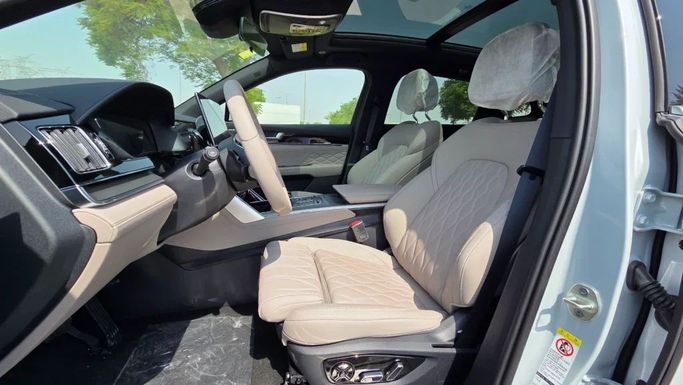 Discover a new dimension of technology and comfort with the new 2025 BYD Tang. This second-generation facelifted SUV shows a great combination of power and elegant design. With a hybrid engine delivering 357 hp and front-wheel drive, the Tang not only guarantees impressive performance, but also helps reduce harmful emissions by combining environmental concerns with dynamic driving. The elegant white color highlights the car's modern design, while the five-door body provides unparalleled access and comfort for all passengers. Thanks to the automatic transmission, every rid