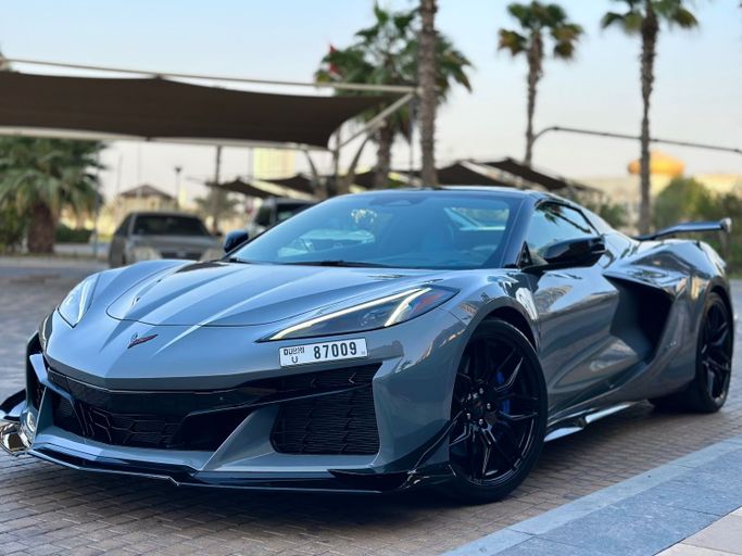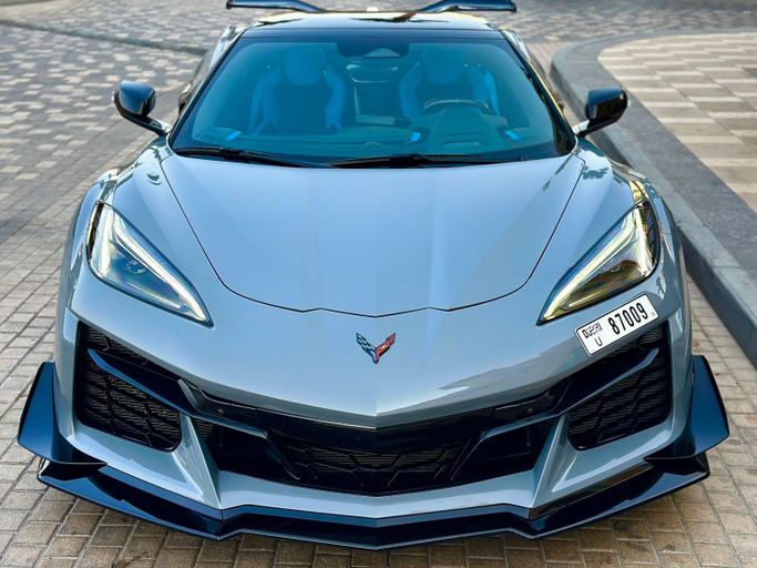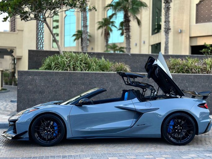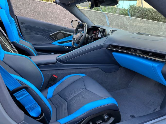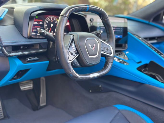 IN WARRANTY - C8 Z06 3LZ Spyder Track pack Z07 under warranty and service contract Exterior: rare color combination head turning Nardo grey with black glittery top Interior : Navy Blue interior with light blue with full carbonfiber The car has Z07 track pack Exhaust system from factory loader than normal Z06 approved by RTA 17,000 Kilometers brand new conditions ✅2 years extendable Waranty ✅ ✅1 year extendable service contract ✅ 7 layers of protection ceramic coating Price: 495,000 Dirhams negotiable For serious buyers only +971507368828 للبيع كورفيت سيارةC8 3L