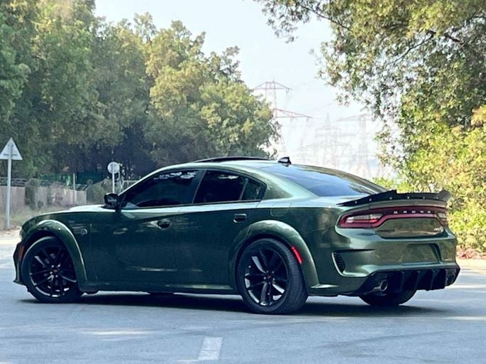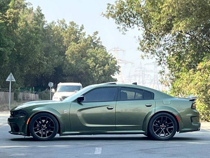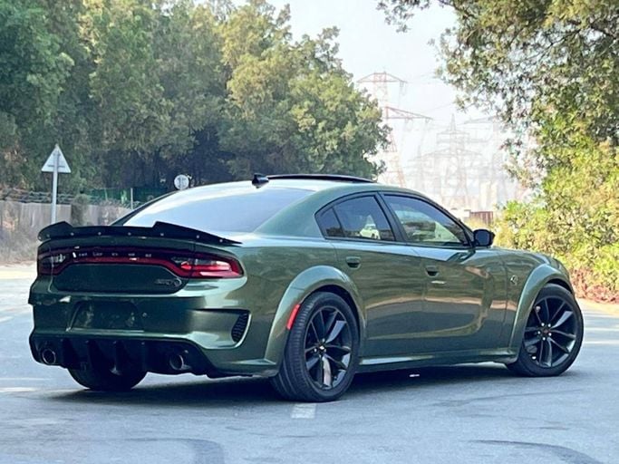 Dodge Charger SRT 2021: The High-Performance Sports Car Specifications: - Model: 2021 - Trim Level: American - Mileage: 48,000 km - Exterior Color: Green - Interior Color: Black - Features: - Top-level specifications with full options - Panoramic sunroof - Electric seat adjustment - Rear air conditioning - Wide body styling - 485 horsepower - Large alloy wheels - Large infotainment screen Additional Services: - Specialized team for transaction procedures - Vehicle registered under company account - Certified with state banks