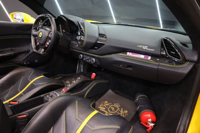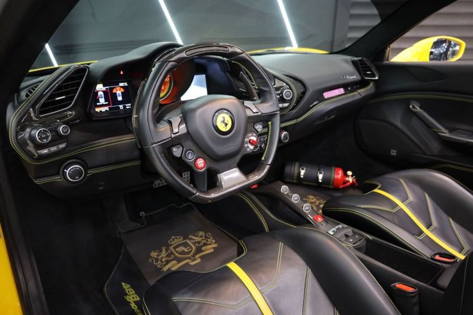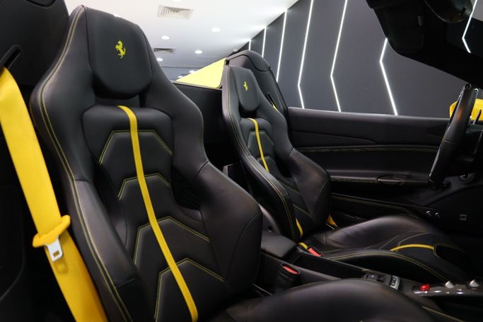 Ferrari 488 Spider GCC Specifications Al Tayer Service Package valid until 05/02/2026 Full Body Paint Protection Film JBL Sound System Adaptive Front Light System Carbon Fiber Rear Air Ducts Carbon Fiber Fog Lamps Carbon Fiber Side Air Splitters Outer Carbon Fiber B-Post Trim Carbon Fiber Underdoor Covers Carbon Fiber Driver Zone with LEDS Carbon Fiber Central Bridge Carbon Fiber Exterior Sill Kick Yellow Safety Belts Dash Inserts in Carbon Fiber Cavallino Stitched on Headrest Sport Exhaust System Additional Colored Mats with Logo Heat Insulating Windscreen Scuderia Ferrar