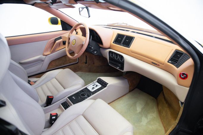 Exotic Cars Dubai proudly presents a timeless classic, a 1998 Ferrari 355 F1 Spider, now available for sale in Dubai. This iconic model, with its radiant yellow exterior, captures the essence of Ferrari's racing heritage and open-top exhilaration. The interior, a luxurious blend of tan and ivory, offers a sumptuous environment that perfectly complements the exterior's vibrancy, embodying the sophistication and sportiness Ferrari is renowned for. The Ferrari 355 F1 Spider is celebrated for introducing the innovative F1-style gearbox to road cars, offering drivers the thrill