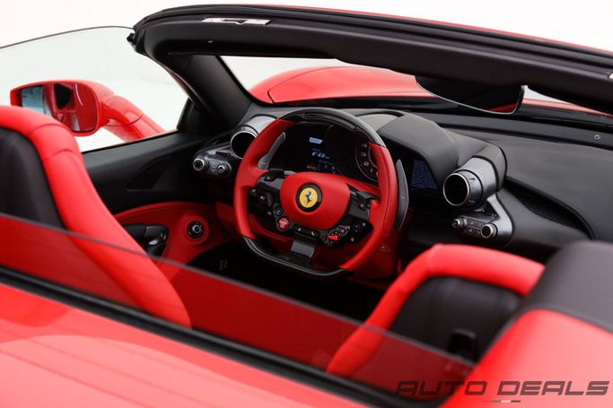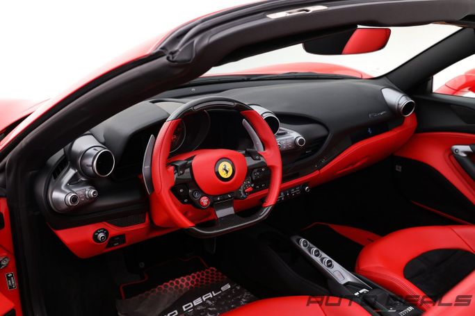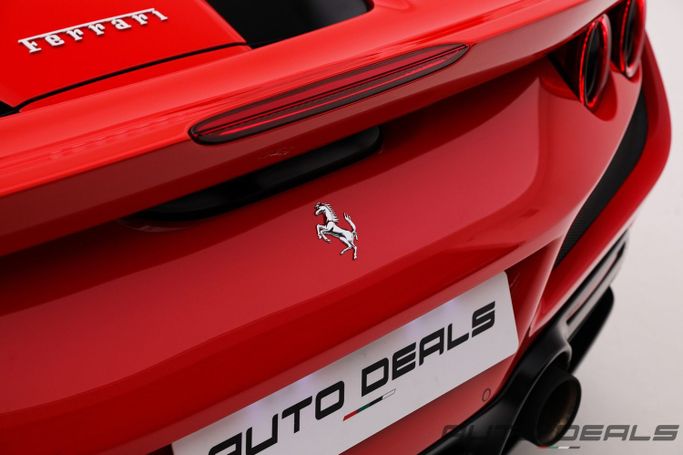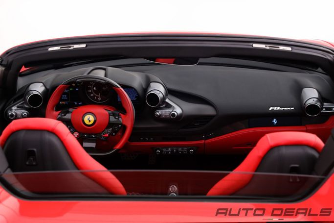 This 2022 Ferrari F8 Spider Coupe is a well-kept, low-mileage example finished in red, with a single previous owner and European specification. It packs a 3.9-liter V8 producing 720 horsepower, driving the rear wheels through an automated manual transmission for crisp, immediate shifts, while the 9,851-kilometer odometer underlines careful usage. The Tributo edition highlights Ferrari’s V8 heritage with a distinctive soundtrack and agile, mid‑engine handling that suits both spirited road driving and confident highway cruising. Inside, the driver-focused cockpit combines pre