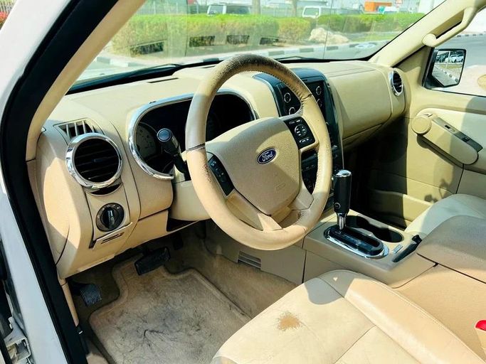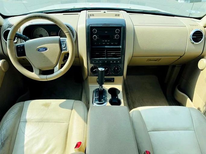 This 2010 Ford Explorer IV in white is a used GCC-spec SUV with five doors, powered by a 4.0-liter petrol V6 delivering 208 horsepower and paired with an automatic transmission and all-wheel drive. It has a single previous owner and 297,801 kilometers on the odometer, reflecting its long-running reliability. The AWD system provides confident traction in varying conditions, while the automatic gearbox offers smooth driving for daily commuting and highway cruising. Inside, the Explorer emphasizes practical versatility with comfortable seating and flexible cargo space to suit