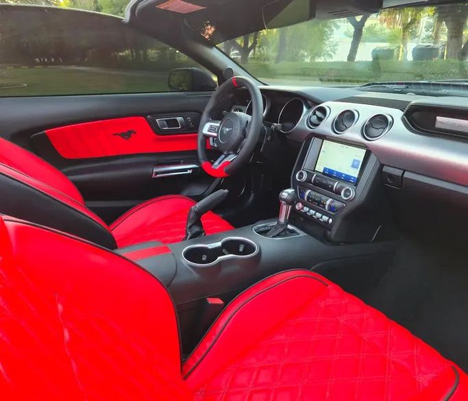 This 2023 Ford Mustang VI Facelift Cabriolet blends performance with open-air driving pleasure. Powered by a 2.3-liter turbo petrol engine delivering 317 horsepower, it achieves brisk acceleration behind a smooth automatic gearbox and rear-wheel drive that respond with confident balance. Its grey exterior presents a refined, modern stance while the convertible roof invites versatile driving in varying conditions. Inside, the cabin focuses on comfortable front seating and practical controls, with the performance edge tempered by everyday usability for a one-owner vehicle tha