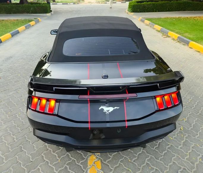 This 2025 Ford Mustang Cabriolet blends modern performance with everyday usability, offering a compelling package in a striking black finish. With a single previous owner and 10,500 miles, it presents as a low-mileage example of the seventh-generation Mustang, powered by a 2.3-liter EcoBoost engine delivering 315 horsepower and paired with an automatic transmission and rear-wheel drive for a confident, engaging drive. The convertible body enhances open-air driving pleasure while maintaining a refined ride, and the American-spec setup ensures typical Mustang character with a