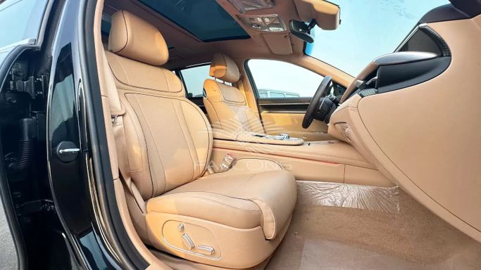 Introducing the stunning 2025 Genesis G90, a pinnacle of luxury and performance in the automotive world. As the second generation of this flagship sedan, the G90 effortlessly combines advanced engineering with opulent aesthetics, making it a standout choice for those who value sophistication and power alike. Under the hood, you'll find a robust 3.5-liter gasoline engine that delivers an exhilarating 380 horsepower. This powerful engine, paired with an advanced automatic transmission and rear-wheel drive, provides a dynamic driving experience that is both smooth and respons