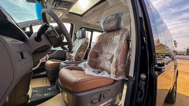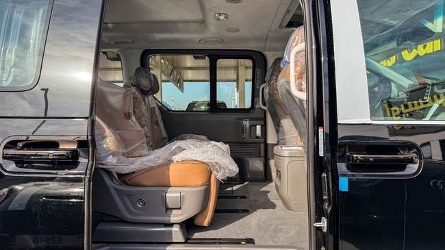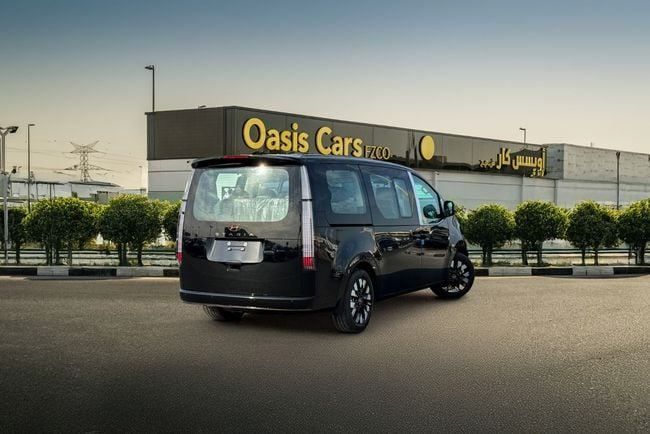 The 2026 Hyundai Staria in black presents a modern, Gulf-spec van that blends practicality with a refined, contemporary look. It is powered by a 3.5-liter petrol engine delivering 272 hp, paired with a smooth 8-speed automatic transmission in a front-wheel-drive layout, offering responsive daily handling and confident highway performance. The cabin focuses on comfort and versatility, with spacious seating and flexible cargo configurations, quiet ride quality, and well-considered materials for long trips or everyday use. Technology includes an intuitive infotainment system w