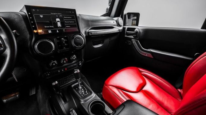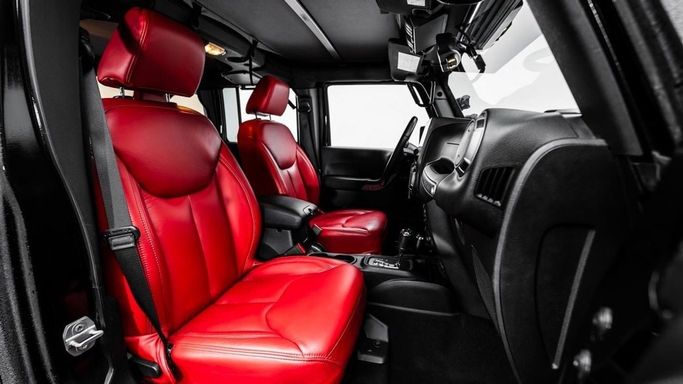 Selling Price: AED 299,000 2017 Jeep Wrangler by SoFlo Custom Mileage: 3,147 Km American Specs Engine Size: 3.6L V6 Horsepower: 450 HP Exterior Color: Black Interior Color: Red