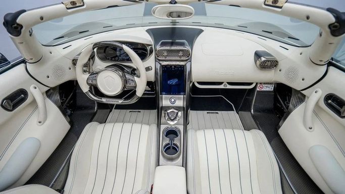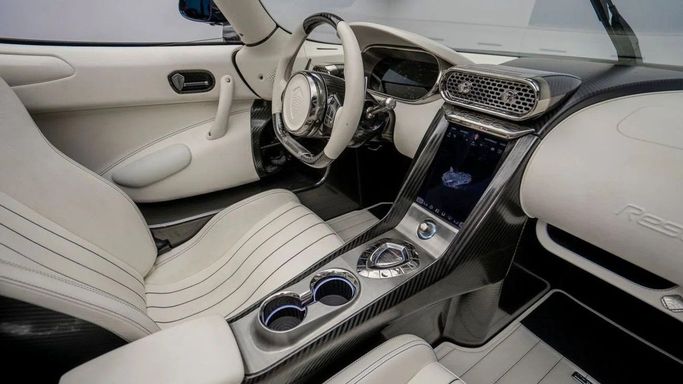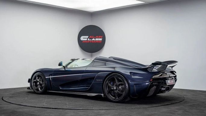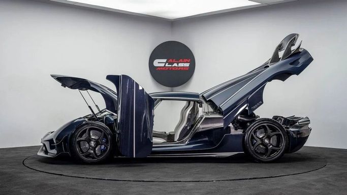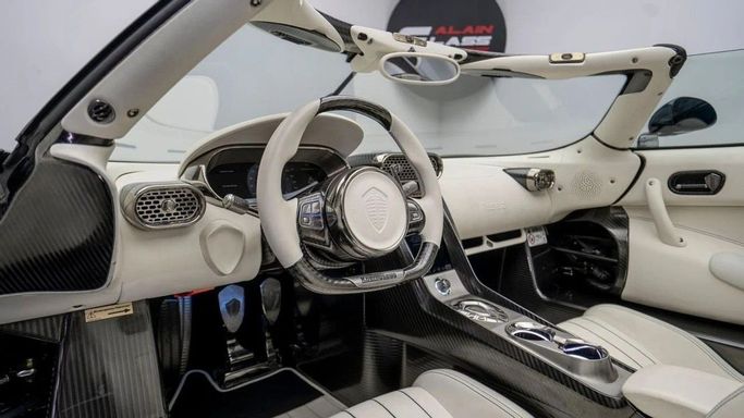 Selling Price: AED 11,800,000 2019 Koenigsegg Regera Mileage: 770 Km GCC Specs Engine Size: 5.0L V8 Horsepower: 375 HP Exterior Color: Blue Carbon Fibre Interior Color: Beige