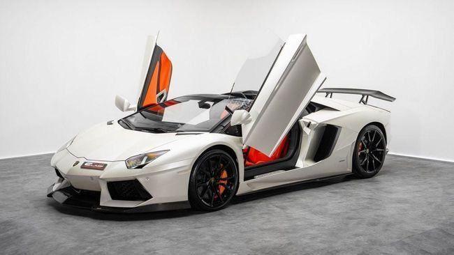 Selling Price: AED 1,059,000 2015 Lamborghini Aventador LP 700-4 Roadster with DMC Kit Mileage: 23,460 Km GCC Specs Engine Size: 6.5L V12 Horsepower: 690 HP Exterior Color: Balloon White Interior Color: Orange