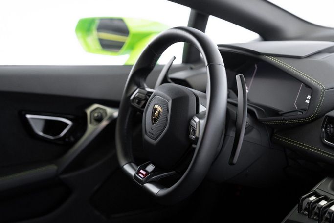 Lamborghini Huracán 2019: The Green Beast of Performance and Style The 2019 Lamborghini Huracán stands as a true symbol of Lamborghini's design and engineering prowess, offering both exceptional performance and a striking visual presence. With its bold green exterior, black interior, and green leather stitching, the Huracán is a showstopper both on the road and in design. Exterior: Bold and Aggressive The green exterior of the 2019 Huracán makes an unmistakable statement, evoking a sense of power and speed that is synonymous with the Lamborghini brand. This vibrant color,