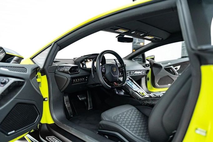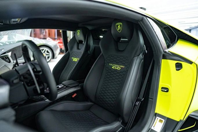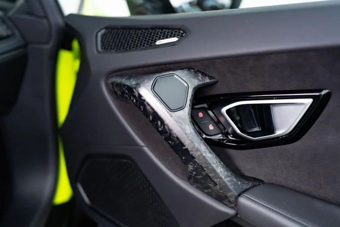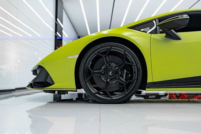 Lamborghini Huracan EVO Coupe 2021 HURACAN FLUO CAPSULE Specs: Japanese Model Year: 2021 Product Type: Limited Edition Capsule Design and Construction Forged Carbon: One of the most striking aspects of the Huracán EVO Fluo Capsule is its use of forged carbon, a lightweight and highly durable material that enhances performance while contributing to the car's aggressive and modern aesthetic. The unique texture and finish of forged carbon give each vehicle an exclusive look, making it stand out on the road. Engine Specifications: The Huracán EVO is powered by