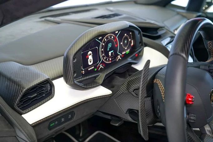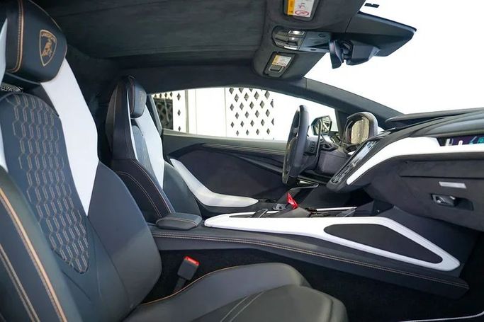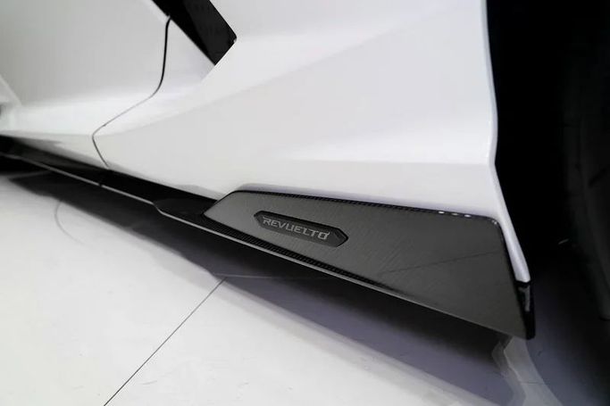 New 2024 Lamborghini Revuelto Coupe in white, built to GCC specifications. It combines a 6.5-liter hybrid V12 with electric propulsion to deliver 1,015 horsepower. An automated manual transmission and all-wheel drive work together to harness power with high precision. With just 10 kilometers on the odometer, it presents as a fresh example from the factory. Power arrives with immediacy, the hybrid setup providing instant torque and strong, linear acceleration. The all-wheel-drive system helps maintain traction through corners and at launch, while the automated manual transm