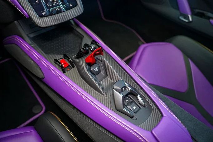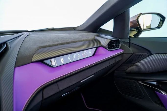 Lamborghini Revuelto 2025 Color: Oro Elios (Gold) Interior: Carbon Matt Finish Wheels: Bronze Diamond-Cut Rims Warranty: Included + 3 Years Free Service PASSENGER DISPLAY Key Specs: Engine: 6.5L V12 Hybrid (Plug-in) Power: 1,001 hp (combined) 0–100 km/h: 2.5 sec Top Speed: 350+ km/h Transmission: 8-speed DCT Drivetrain: All-Wheel Drive Drive Modes: Recharge, Hybrid, Performance, Corsa, and more