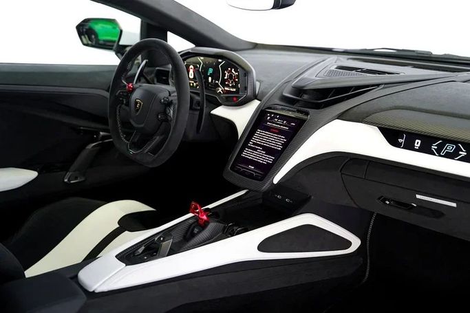 New 2025 Lamborghini Revuelto coupe finished in white, powered by a hybrid 6.5-liter V12 that delivers an impressive 1015 horsepower. The system combines an automated manual transmission with all-wheel drive, offering precise, responsive shifts and confident traction in a wide range of conditions. This setup blends the visceral character of a V12 with the instant torque of electric motors, creating a driving experience that feels both thrilling and controllable. The Revuelto is designed to communicate clearly with the driver, with a chassis and aerodynamics tuned for balan