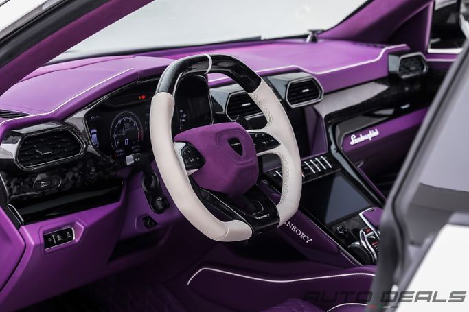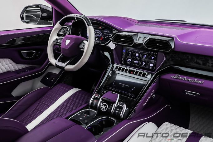 Used 2019 Lamborghini Urus with Mansory Kit in white blends Lamborghini’s signature design with practical SUV versatility. Under the hood sits a 4.0-liter twin-turbo V8 producing 650 hp, paired with all-wheel drive and an eight-speed automatic transmission for immediate response and confident traction in varied conditions. The GCC-spec setup reflects Gulf-region tuning, while a single owner and 98,219 miles suggest a well-cared-for history for a model of its age. Inside, the cabin pairs premium materials and supportive seating with a driver-focused layout, delivering comfo