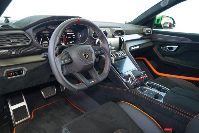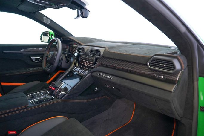 2023 Lamborghini Urus Performante, The Ultimate Driving Machine Unrivaled Luxury and Performance Welcome to Exotic Cars Dubai, your top choice for the world's most exclusive supercars and luxury vehicles. We are excited to present this remarkable 2023 Lamborghini Urus Performante, a high-performance SUV designed for those who want speed, style, and utility in one package. This lightly used model features a bold green exterior and a sporty black and green interior, enhanced by extensive carbon fiber accents inside and out. Incredible Power and Speed The Urus Performa
