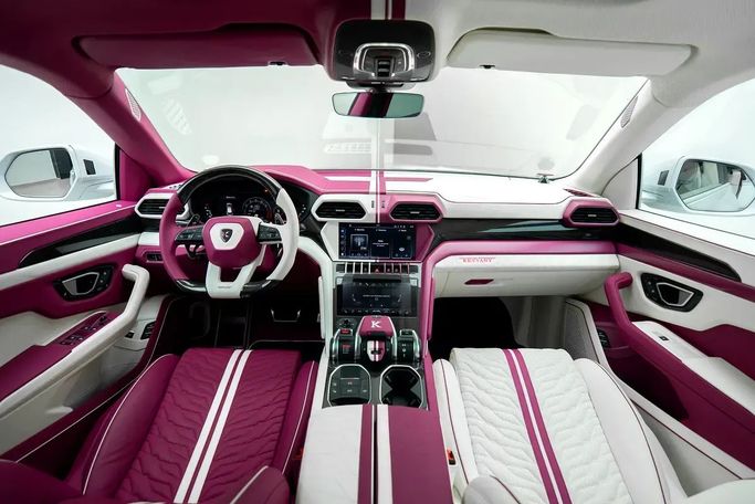 2024 LAMBORGHINI URUS BY KEYVANY | 1 OF 1 | CUSTOM EXHAUST SYSTEM *EXTERIOR COLOR MATT WHITE (FULL) *24 INCH FORGED WHEELS IN WHITE *PURPLE CARBON CERAMIC BRAKE CALLIPERS *CARBON FIBER BONNET *CARBON FIBER FRONT BAR *CARBON FIBER REAR DIFFUSER *CARBON FIBER SPOILERS *CARBON FIBER FENDERS *2 TONE PREMIUM LEATHER INTERIOR (WHITE & PURPLE) *BANG & OLUFSEN AUDIO SYSTEM *EMBROIDED KEYVANY LOGO ON HEADREST *FULLY ELECTRIC FROTN SEATS *PERFORATED LEATHER/CARBON STEERING WHEEL IN 2 TONE *WHITE SEATBELTS WITH KEYVANY LOGO *PANORAMIC ROOF *CARBON FIBER INSERTS *AMBIENT LIGHT PAC