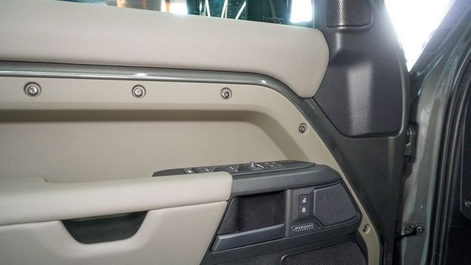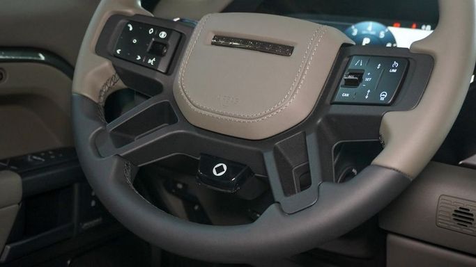 Brand new Land Rover Defender for sale in Dubai. Grey 2025 model, available at Najem Motors FZE. This car has automatic transmission, 6 cylinder engine, 20″ wheels and beige interior. GCC specs.