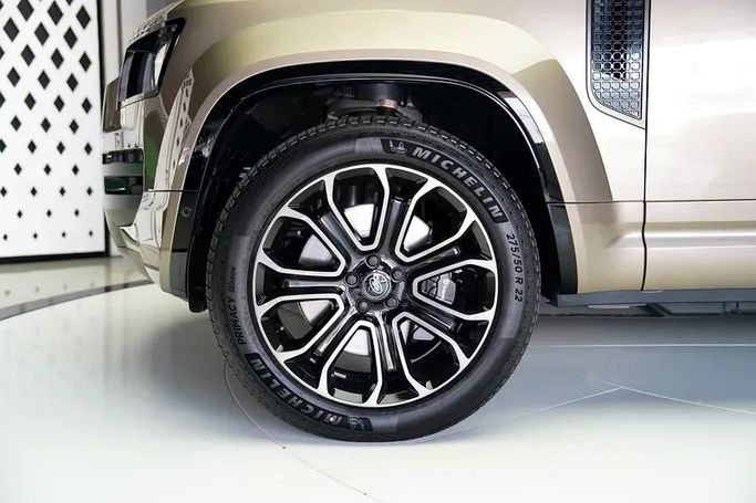 This Land Rover Defender II, a 2025 model brought into a used listing, presents in a warm golden finish with the practicality of a full 5-door SUV. It’s equipped with an Octa-tuned setup featuring a 4.4-litre petrol V8 delivering 635 horsepower, paired with an automatic transmission and all-wheel drive. The combination emphasizes strong on-demand performance while maintaining the Defender’s signature versatility for diverse terrains and everyday use. On the road, the AWD system and refined power delivery offer confident acceleration and steady, composed handling. The golde
