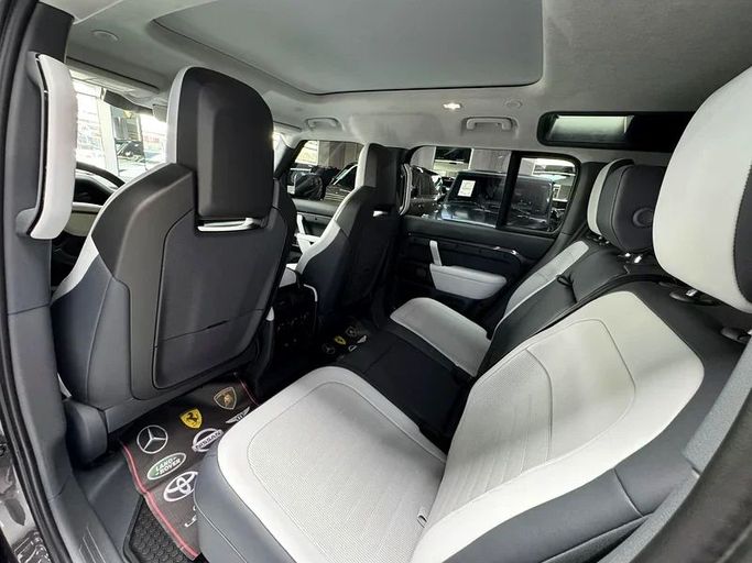 DEFENDER OCTA P635 FIRST EDITION New 2025 Land Rover Defender II 5-door SUV in grey delivers a potent combination of rugged capability and refined on-board comfort. Under the bonnet sits a 4.4-litre petrol engine producing 635 horsepower in the Octa base, paired with an automatic transmission and all-wheel drive for confident performance across terrains and conditions that GCC-spec models are built to handle. The Octa-tuned power is delivered smoothly, and the AWD system helps maintain traction while balancing ride comfort with off-road capability. Inside, the Defender offe