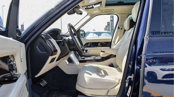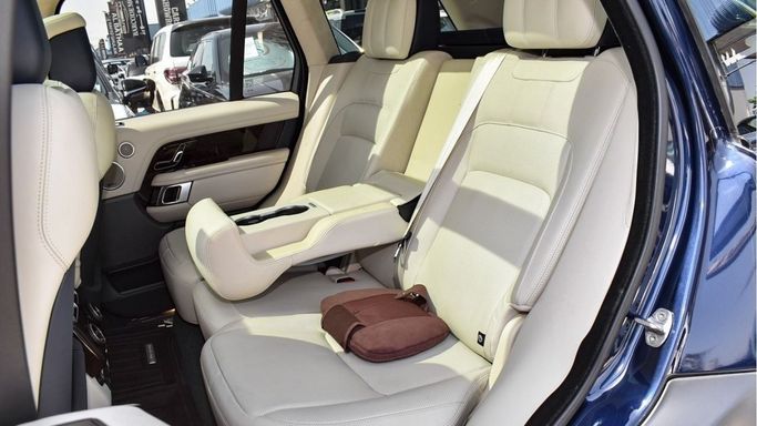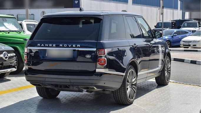 Pre-owned Land Rover Range Rover HSE P400. Blue 2022 model. This car has automatic transmission, 6 cylinders, 22″ wheels and beige interior. 18,000 km, European specs.