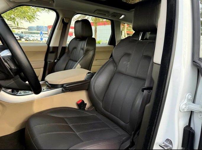 We present to your attention the new 2017 Land Rover Range Rover Sport in an elegant white color. This second-generation SUV, which has undergone a facelift, is distinguished by a combination of power and sophistication, providing unsurpassed performance and comfort on all routes. A powerful 360 hp petrol engine is installed under the hood of this Land Rover, which combines amazing dynamics and impressive performance. All-wheel drive combined with an automatic transmission provides excellent handling both on and off asphalt. This car is designed for those who appreciate no