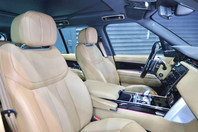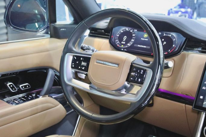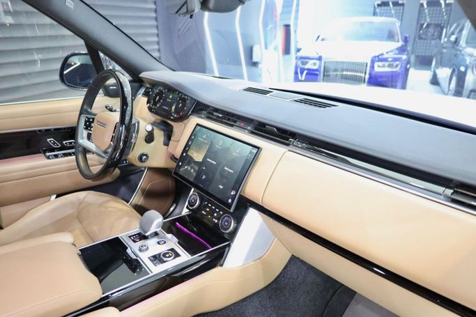 Range Rover Vogue HSE P530 GCC Specifications Dealer Warranty until 04/04/2028 Full Body PPF Panoramic Roof Meridian Sound System Heated and Massage Seats Console Refrigerator Apple CarPlay and Android Auto Ambient Lighting Wireless Charging Tray Heated Steering Wheel Blind Spot Assist 360° Camera 23-Inch Wheels