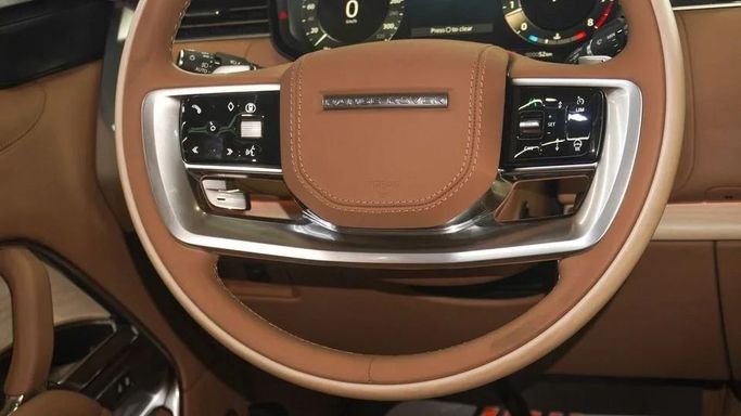 New 2025 Land Rover Range Rover SV for sale in Dubai. Available from Najem Motors FZE. Automatic transmission, 8 cylinder engine, 23″ wheels and tan interior. Never driven, European specs.