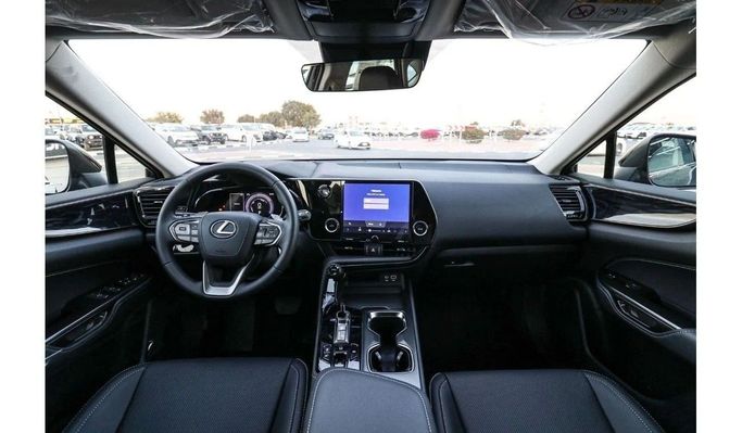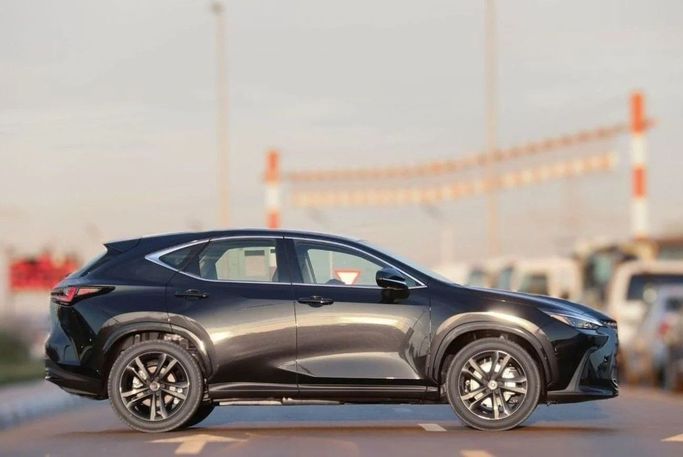 New 2025 Lexus NX II Hybrid, GCC-spec, in black, pairs a 2.5-liter hybrid powertrain with an automatic transmission and all-wheel drive to deliver 244 horsepower of total output. The compact SUV carries Lexus' design language with a clear silhouette and a cabin that emphasizes comfort and quiet ride for daily use. The 350h-based hybrid system blends electric and petrol power for smooth response and efficient performance, while AWD helps maintain traction in varied conditions. Inside, the NX II offers supportive seating and straightforward technology that keeps controls with