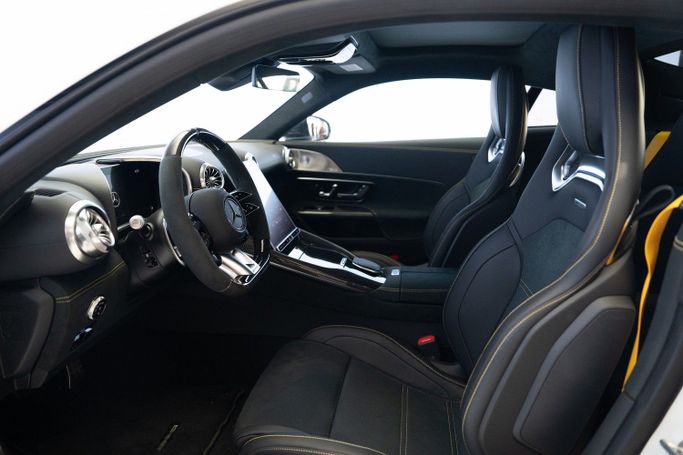 2024 Mercedes-Benz AMG GT 63 – High-Performance Luxury Coupe Sleek White Exterior – A Statement of Power and Elegance The 2024 Mercedes-Benz AMG GT 63, finished in a stunning White exterior, is the perfect fusion of aggressive styling and refined luxury. With its bold Panamericana grille, sculpted body lines, and dynamic LED headlights, this four-door coupe is designed to turn heads. The AMG aerodynamics package enhances both performance and aesthetics, making it an unmistakable presence on the road. Black Interior – A Driver-Focused Cabin Step inside to experience a luxur