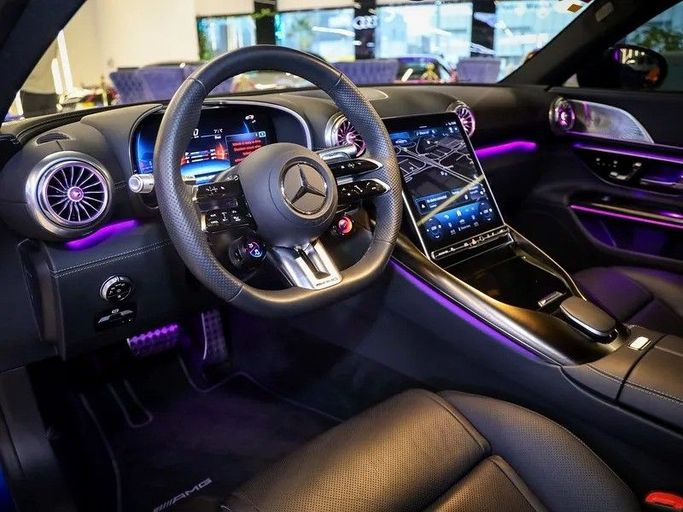 2024 Mercedes‑AMG GT55 4MATIC -Perfect Condition -Warranty Available on Request from German Experts 2024 Mercedes-AMG GT55 4MATIC+ Coupe Low Mileage : 6300km *Clean Title •GCC Navigation *Warranty available up on request from *GERMAN EXPERTS* up to 5 Years Warranty And Service Contract • Year: 2024 • Engine: 4.0 L twin-turbo V8 – approx. 469 hp, 516 lb-ft torque • Drivetrain: AMG 4MATIC+ AWD with 9-speed automatic • 0-100 km/h: ~3.8 s | Top speed: ~295 km/h •Options & features: Adaptive suspension, rear-axle steering, multiple driving modes (Comfort, Sport, Race), large
