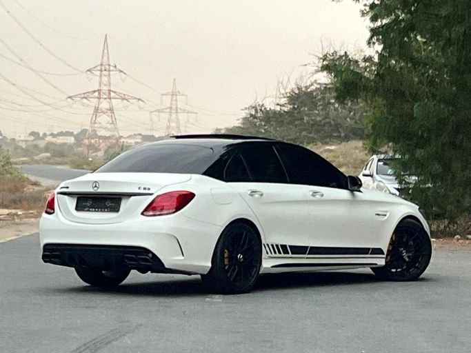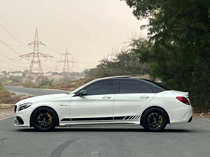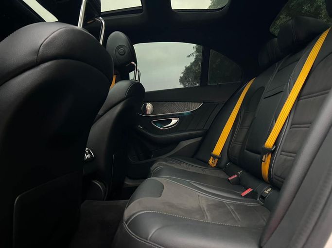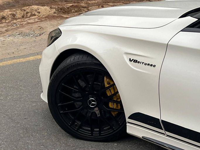 Mercedes-Benz C63 2017: The Luxury Sports Car We present the 2017 Mercedes-Benz C63, a luxurious sports car with outstanding performance and a bold design. Specifications: Model: 2017 Specification: American Exterior Color: White Interior Color: Black with Yellow Seatbelts Features: High Performance: Powered by a strong engine Bold Exterior Design: Equipped with LED lights and aluminum alloy wheels Sporty Interior Cabin: Features leather seats and an automatic dimming rearview mirror Advanced Safety Technology: Includes automatic emergency braking and a tire pressure mon