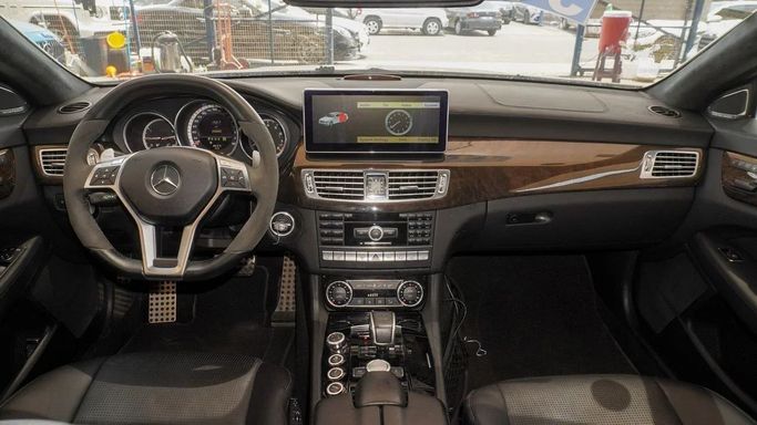 Mercedes-Benz CLS 63 AMG. 8 cylinder engine, white exterior and automatic transmission. Comes with 20″ wheels and black interior. 90,000 kilometers on the odometer, Japanese specs.
