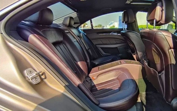 MERCEDES BENZ | CLS 500 | AMG | GCC SPECS MODEL: 2014 KMS: 47,000 7 SPEED AUTOMATIC TRANSMISSION EXTERIOR COLOR: MANGANITE GREY METALLIC (MATTE) INTERIOR COLOR: DESIGNO AUBURN BROWN MATERIAL: LEATHER EXTERIOR FEATURES: ✅ CHROME BODY ACCENTS ✅ AUTOMATIC HALOGEN HEADLAMPS & FOG LIGHTS ✅ LED DRL ✅ 18" PREMIUM POLISHED AMG WHEELS ✅ ALL-SEASON TIRES ✅ AMG TRUNK LIP INTERIOR FEATURES: ✅ INFOTAINMENT SYSTEM ✅ PREMIUM AUDIO SYSTEM ✅ SUNROOF ✅ AUTO ADJUSTABLE FRONT SEATS ✅ HEATED & VENTILATED FRONT SEATS ✅ MASSAGE FRONT SEATS CAPABILITY & FUNCTIONALITY: ✅ REMOTE PROXIMITY KEYLESS PU