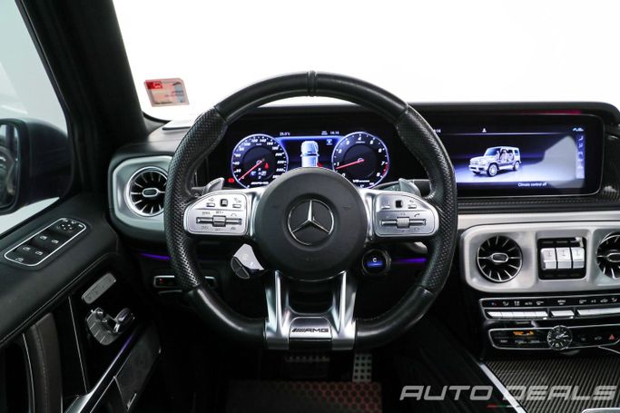 This 2020 Mercedes-Benz G-Class AMG II (W463) is a black, five-door SUV with a single previous owner and 147,518 km on the odometer. It is powered by a 4.0-liter twin-turbo V8 delivering 585 hp, paired with a responsive automatic transmission and permanent all-wheel drive for strong on-road performance and capable handling off-road. Rooted in the 63 AMG lineage, it carries the distinctive presence and driving character that define this model while meeting GCC specifications for regional use. Inside, the G-Class pairs rugged exterior appeal with a refined cabin and modern te