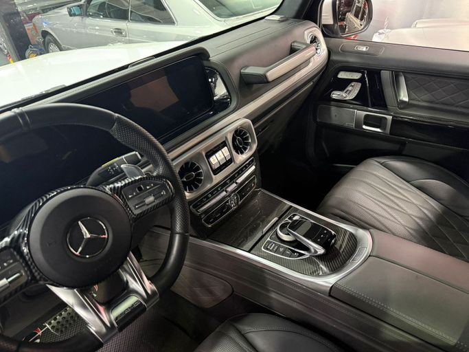 Star Collection LLC, established in 1993, is the fourth oldest showroom in Dubai and one of the leading showrooms in the UAE for its profound collection of classic and modern cars. Star Collection provides rare finds such as cars with very low mileage, unique car models, and clean titles. The showroom offers both investment opportunities and the fulfillment of dreams. The Mercedes-Benz G 63 is a powerful luxury SUV imported from Japan, with 35,000 km on the odometer. It features a clean white exterior with a contrasting black front bumper guard that gives it a bold, rugged