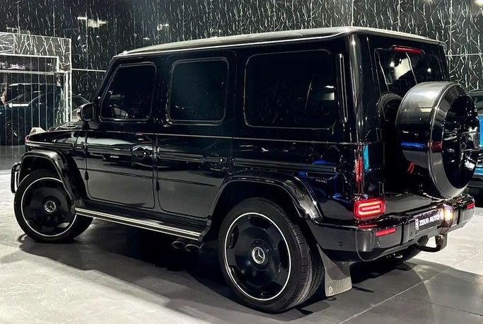 This 2023 Mercedes-Benz G-Class G 63 AMG, generation II (W463), is a five-door SUV finished in a deep black exterior and aligned with GCC specifications. It comes from a single previous owner and shows 20,490 kilometers on the odometer. Power comes from a petrol 4.0-litre twin-turbo V8 in the 63 AMG lineage, producing 585 horsepower and routed through an automatic transmission to all four wheels for composed, responsive performance. The AMG-tuned setup delivers a strong and linear surge when you press the accelerator, while the all-wheel-drive system and chassis tuning pro